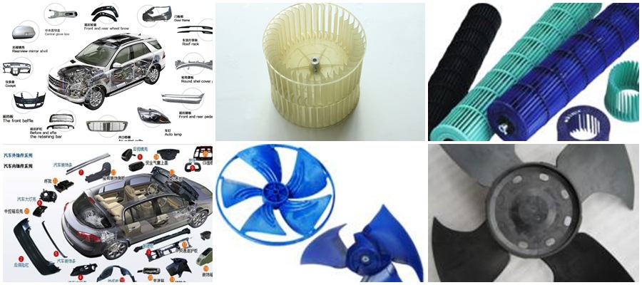PP加玻纤材料,可以被用来制作空调的轴流风扇和贯流风扇。此外,它也可以用于制造高转速洗衣机的内桶、波轮、皮带轮以适应其对机械性能的高要求,用于电饭煲底座和提手、电子微波烤炉等对耐温要求较高的场所。